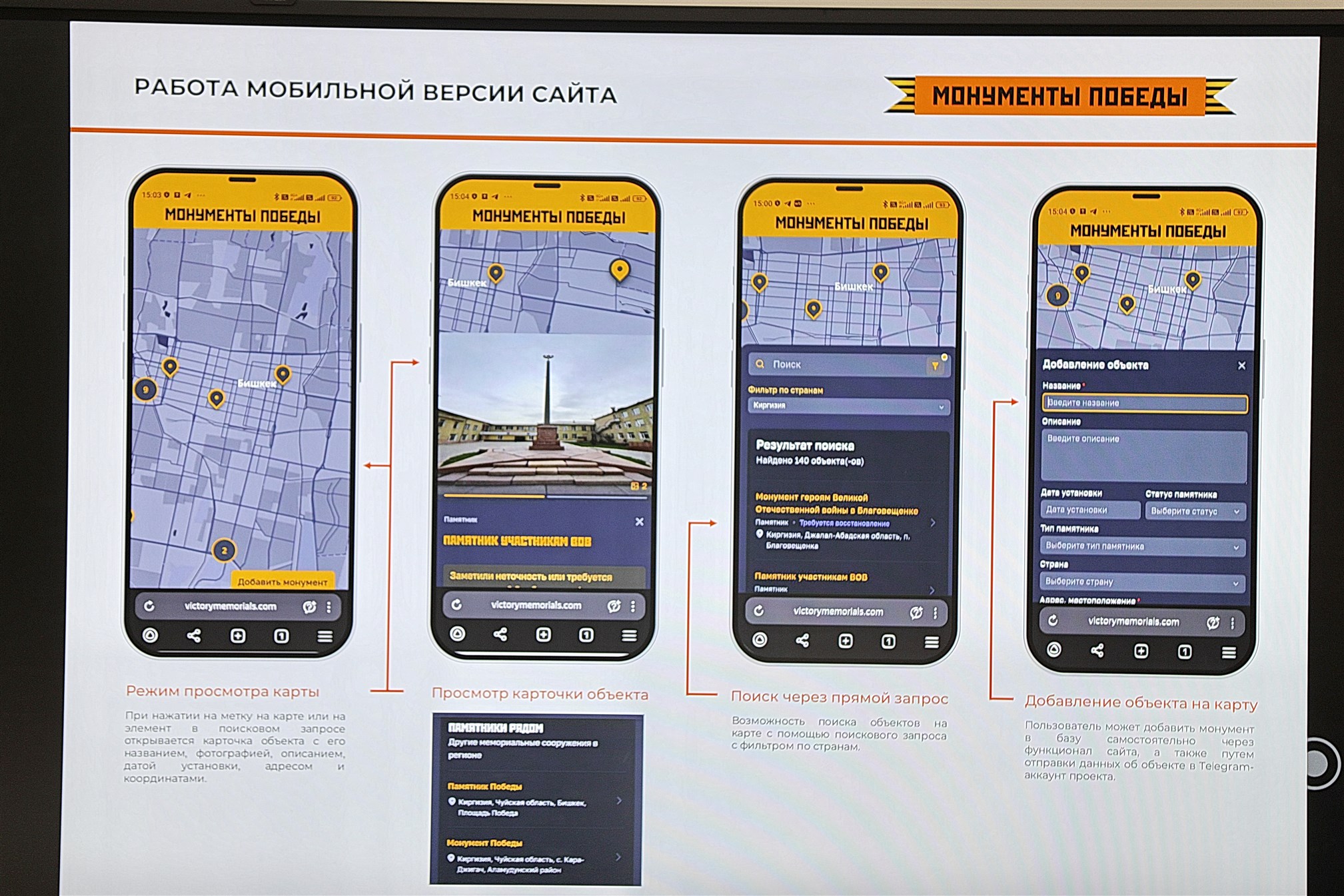 В заключительной части встречи кыргызские историки и эксперты выразили готовность к активному взаимодействию с проектом «Монументы Победы». Стороны договорились в ближайшее время обсудить возможные направления совместной работы. Среди них - добавление новых монументов на интерактивную карту, рассмотрение возможности восстановления части памятников, находящихся в ветхом состоянии, а также создание объединения российских и кыргызских историков для продвижения идей проекта