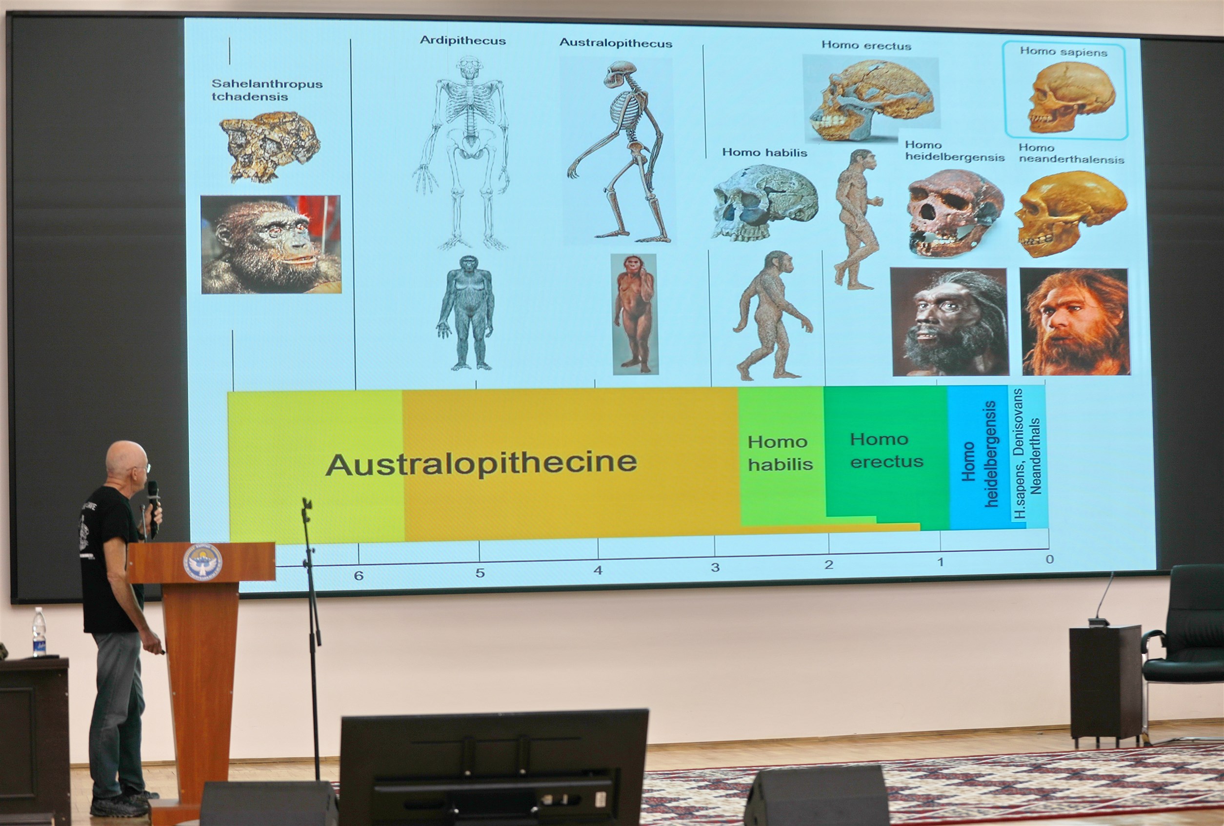 Научный форум “Начало пути” прошел в эту субботу 1 ноября 2025 года в Бишкеке в национальной академии наук КР. Популярные зарубежные ученые палеонтологи, биологи, археологи рассказали о происхождении и развитии человека, показали черепа древних людей.
