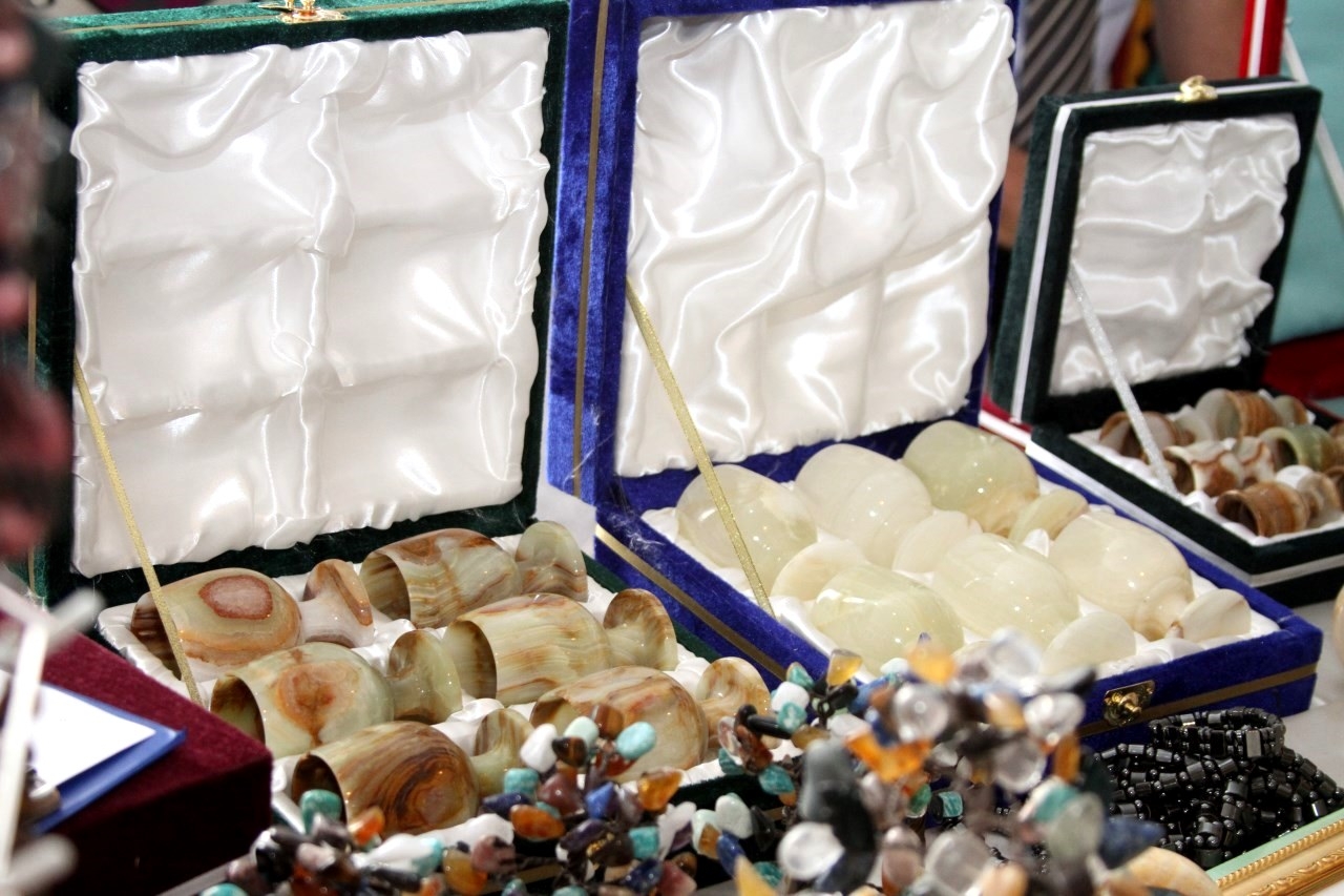 Таджикские мастера могут сделать даже простые письменные приборы и шкатулки настоящими произведениями искусства, от которых просто не отвести глаз. Но особое восхищение публики вызвали картины, созданные из каменной россыпи. Также спросом пользовалось «Дерево счастья», собранное из микса самоцветов.