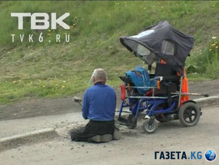 В Красноярске пенсионер, который уже несколько десятков лет передвигается на инвалидной коляске, не смог проехать к больнице, поэтому вооружился молотком и разбил бордюр. Для этого ему пришлось целый день просидеть на дороге. Теперь власти намерены благоустроить новообразовавшийся импровизированный пандус.