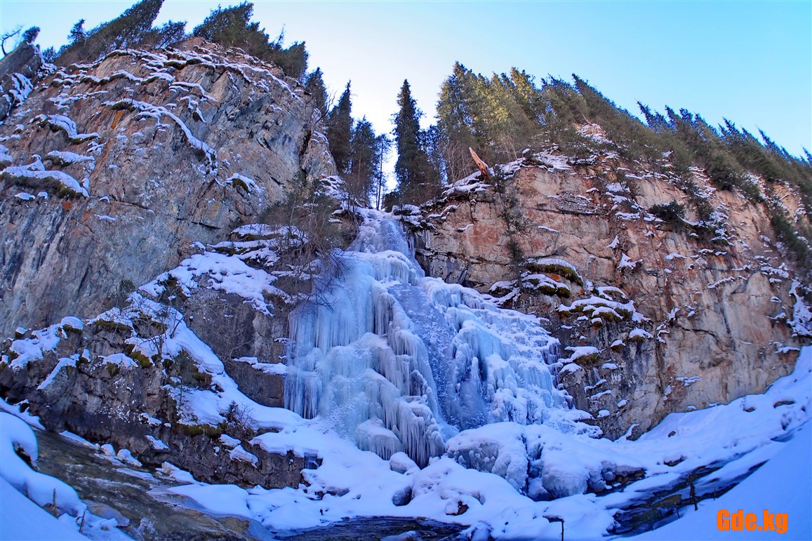 Источники расположены в двух юртах. Внутри раздевалка и бассейн с теплой водой. Продолжительность приема ванн - минут 20-30, больше не рекомендуется.Водопад (2220м) находится в 3-х км от источников, высота водопада 15-17 м.